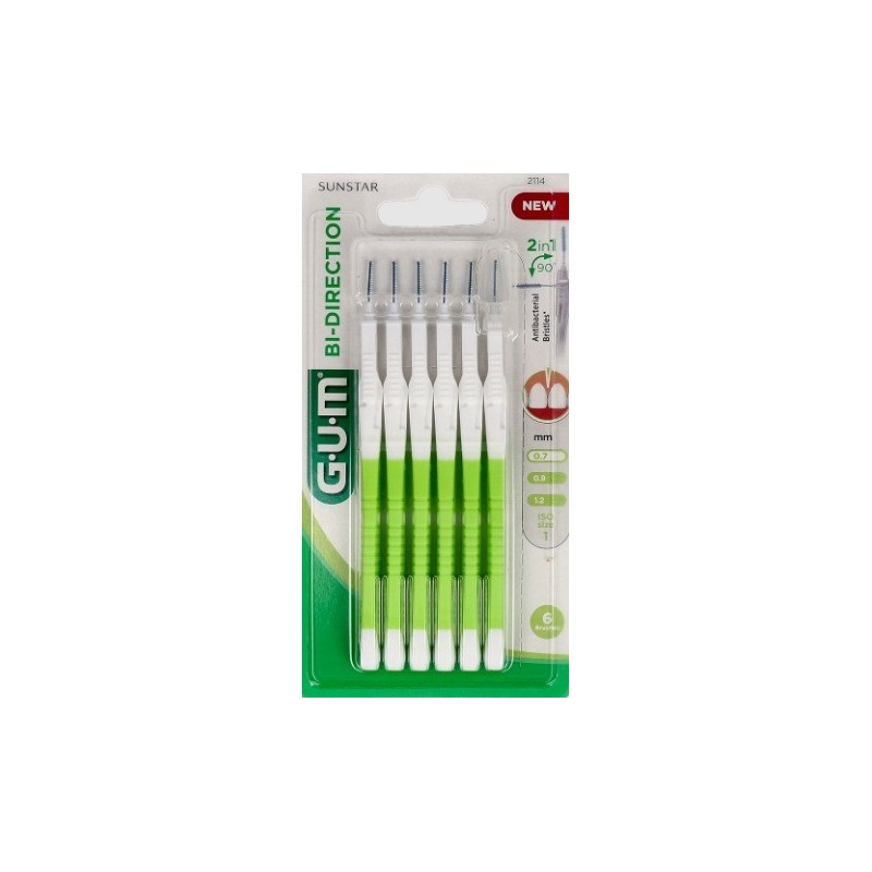 Ello permite el uso del cepillo con el cabezal recto como prolongación del mango para la higiene de los espacios interdentales anteriores, o bien girar hasta 90º en forma de "L" para acceder a los espacios interdentales posteriores.